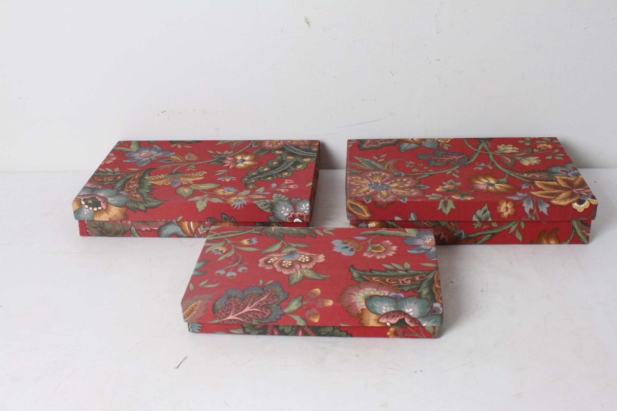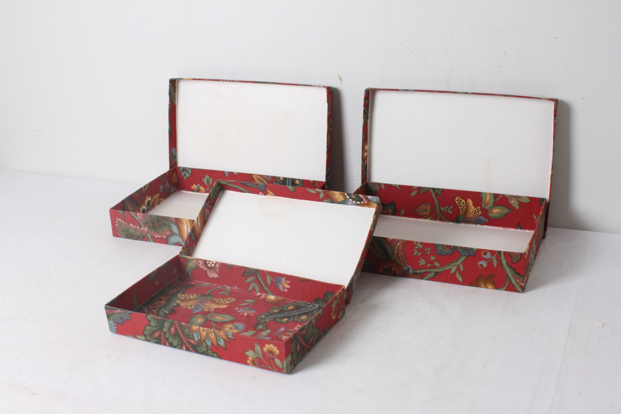 Ensemble de 3 boites de rangement vintage en carton et tissu.
