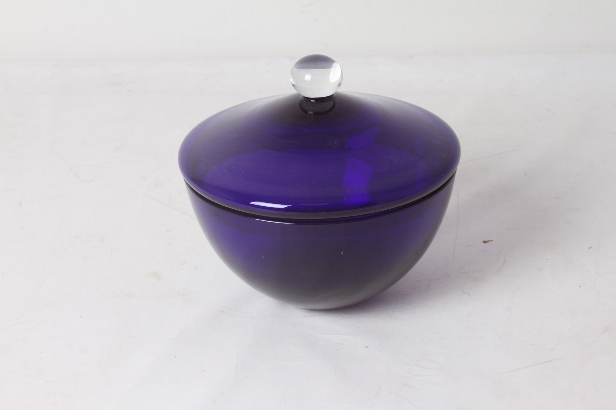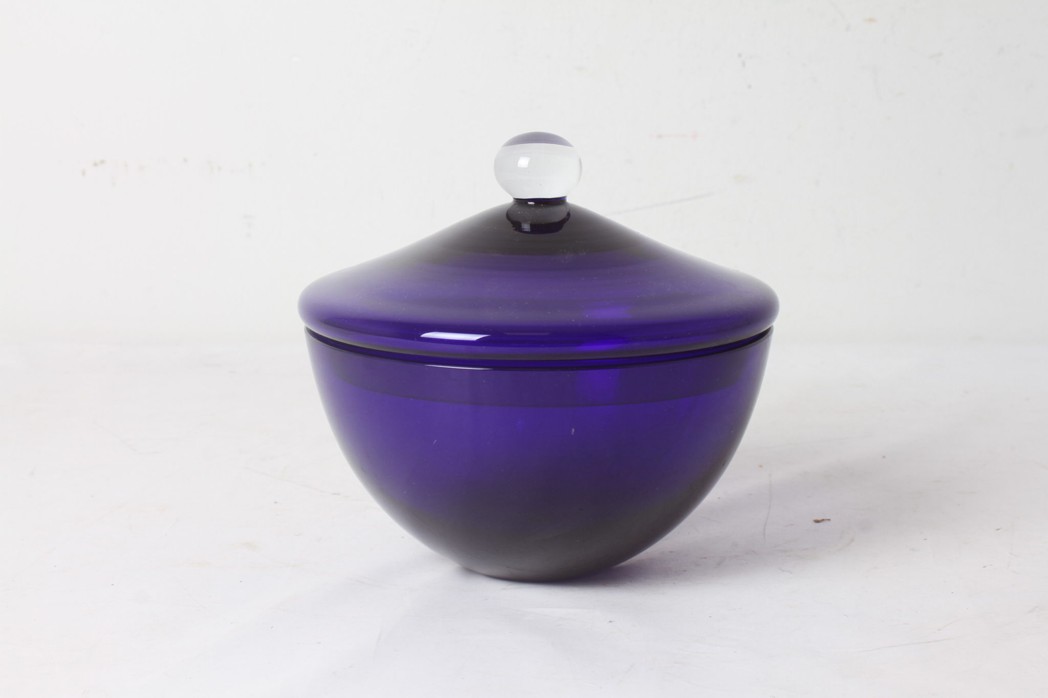 Bonbonnière en verre de couleur bleu cobalt, signé Le Perle.