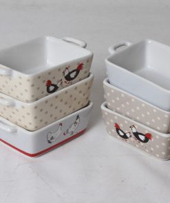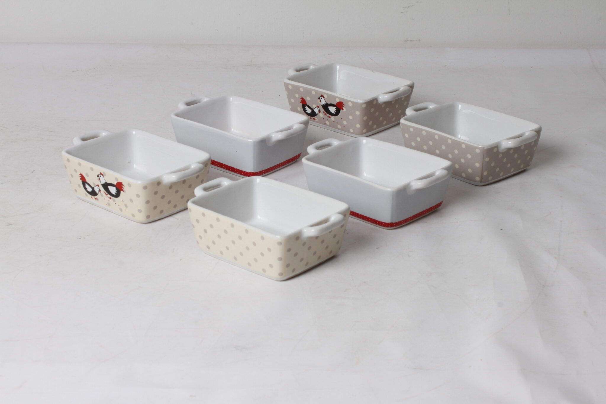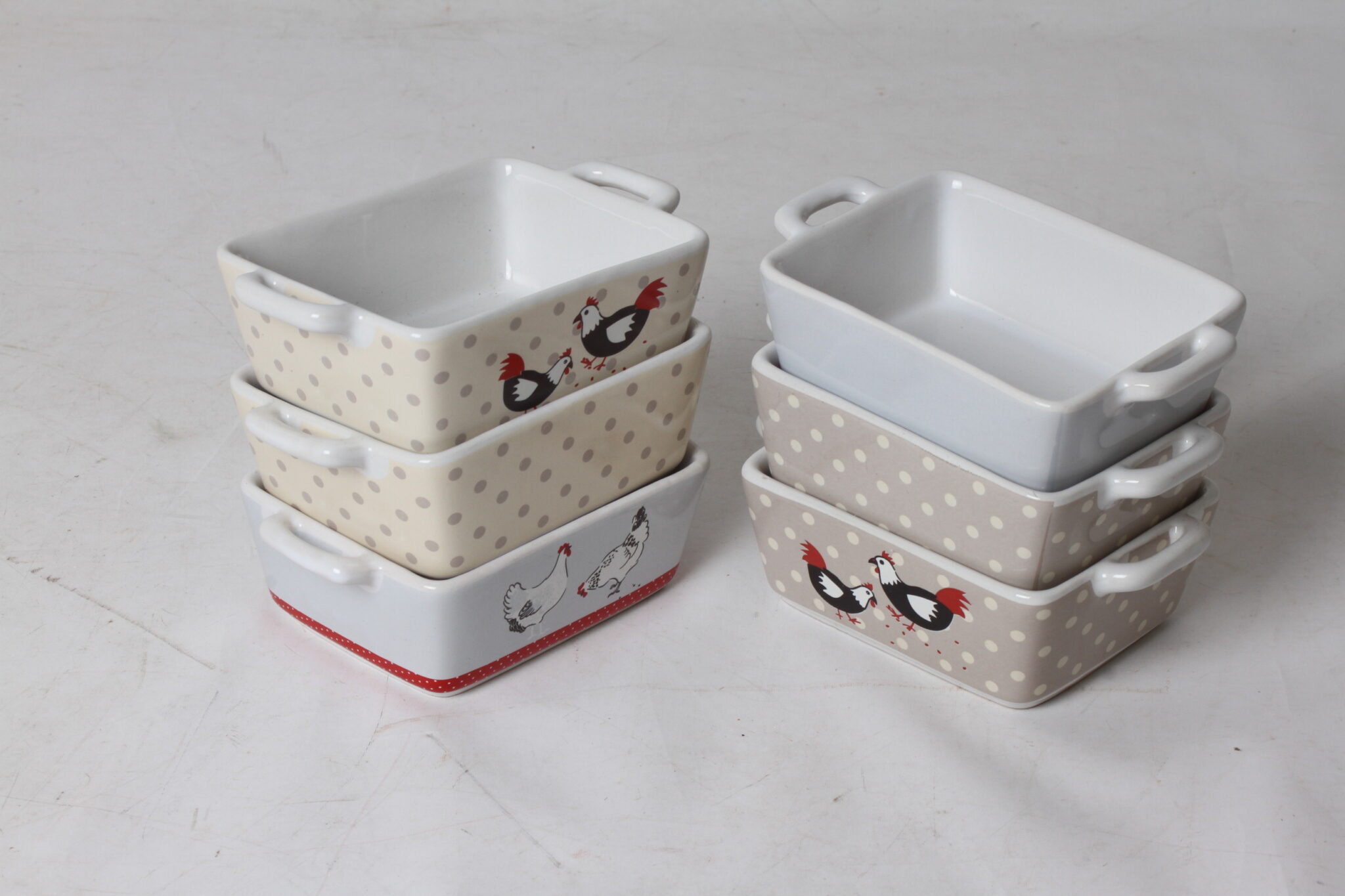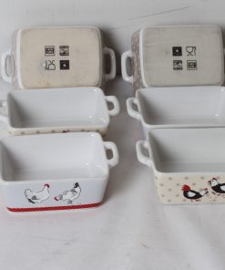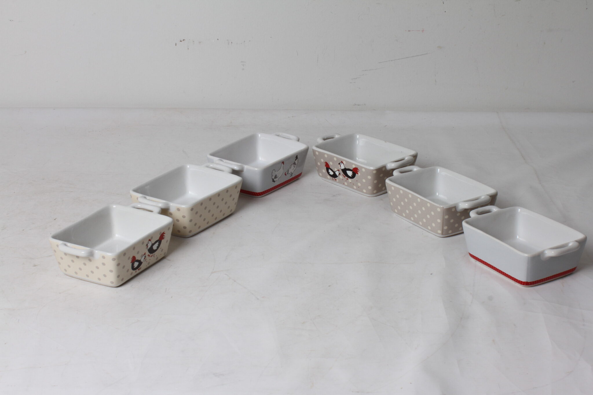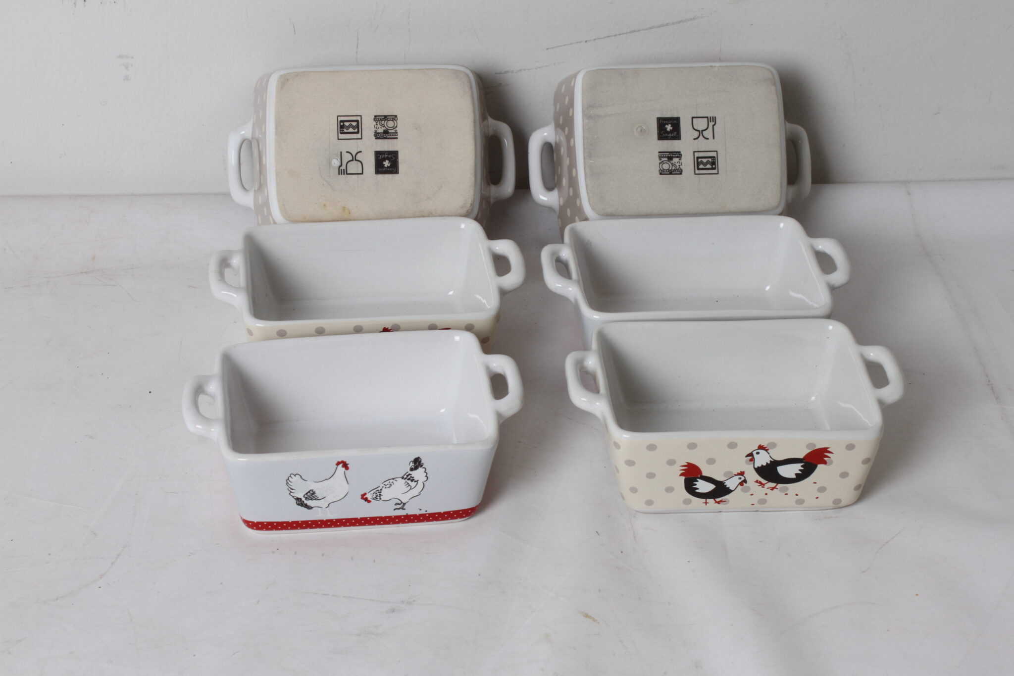 Suite de 6 caquelons en céramique à décor poules – Françoise Saget.