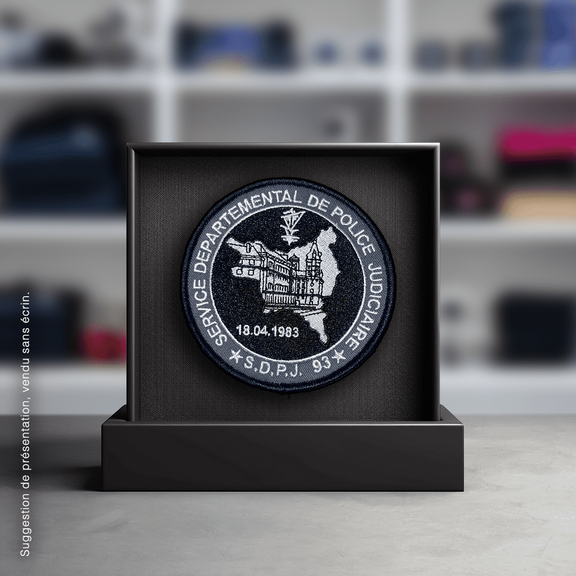 Ecusson SDPJ – 18.04.1983, brodé, rond 8cm, fixation velcro.