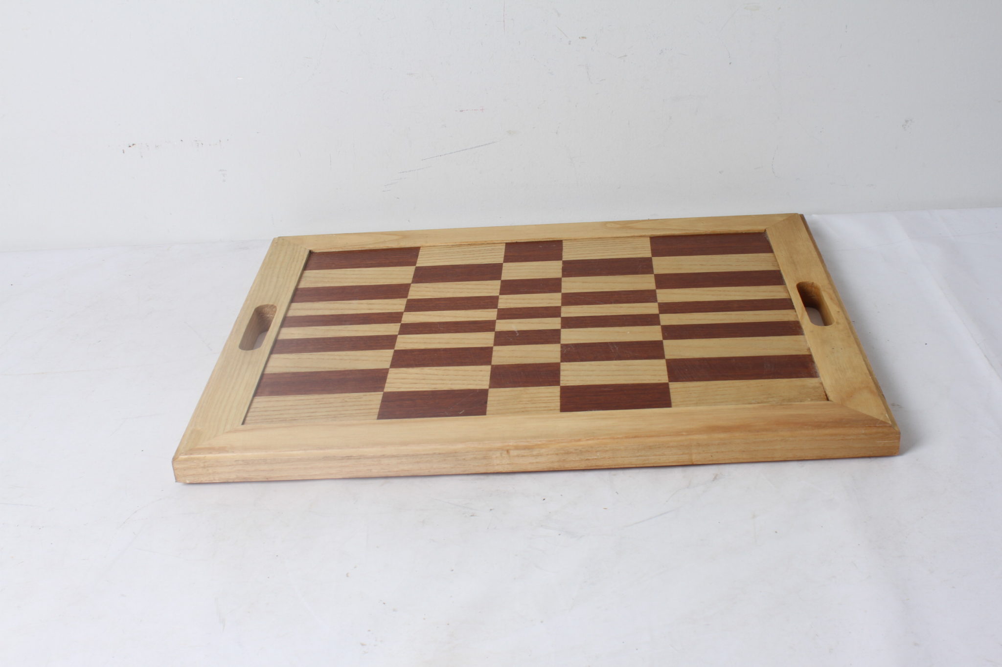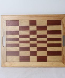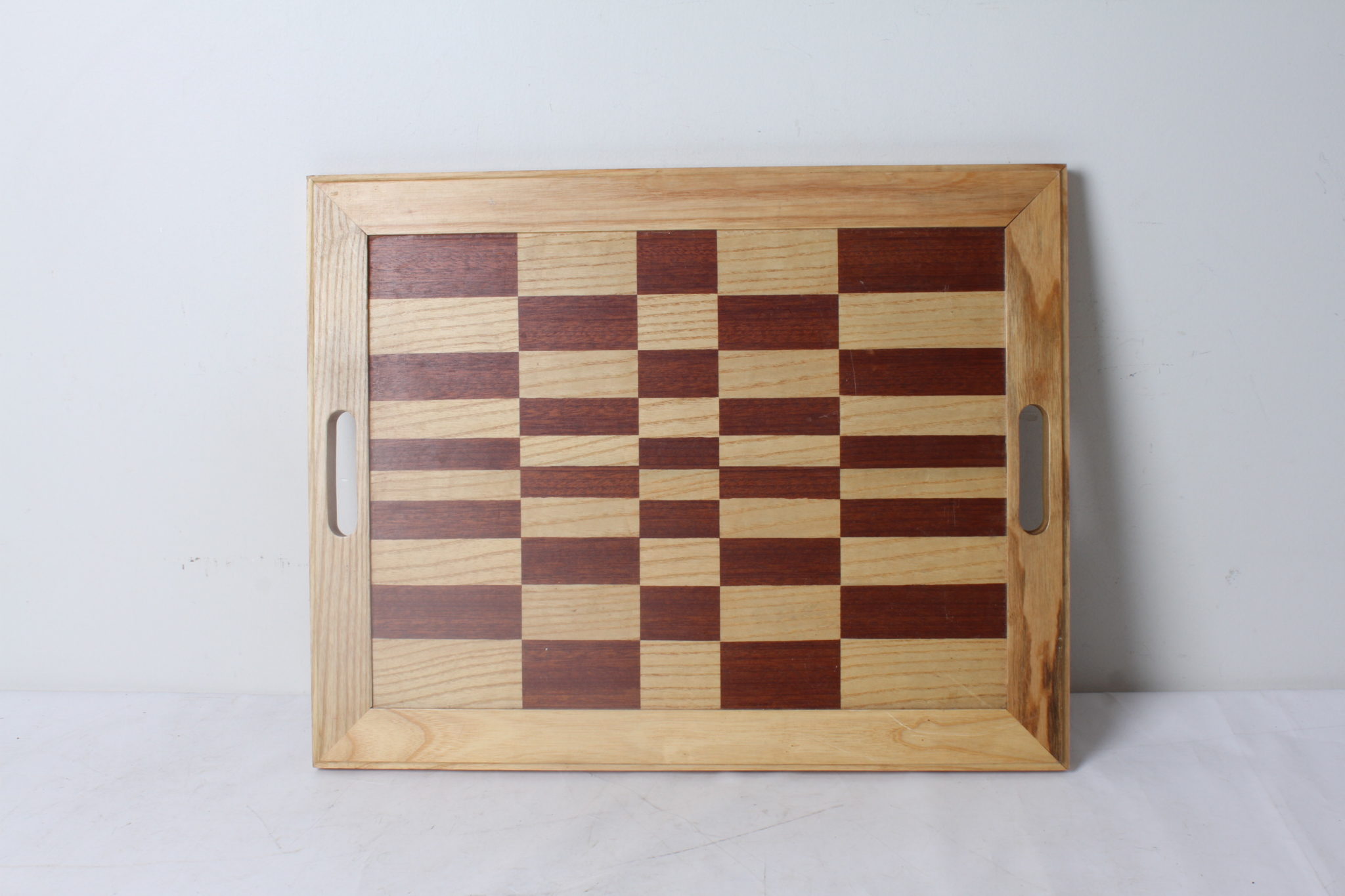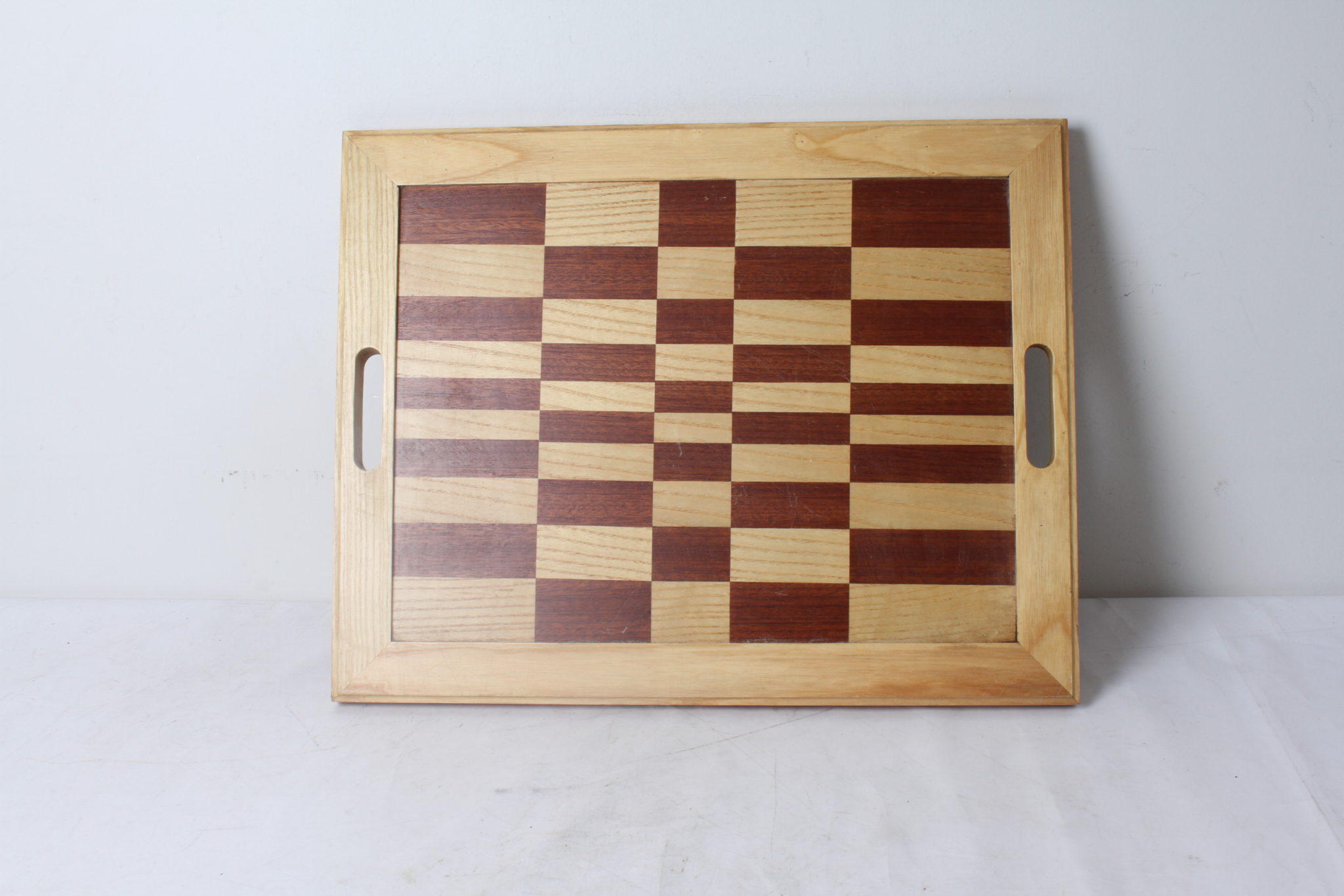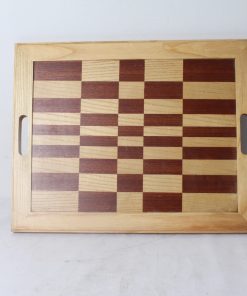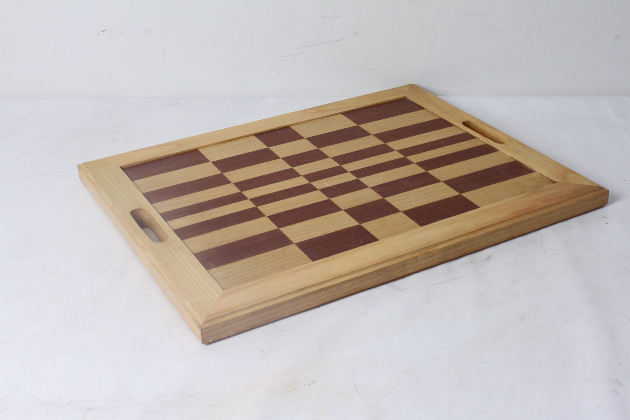 Grand plateau en bois de belle qualité, poignées intégrées.