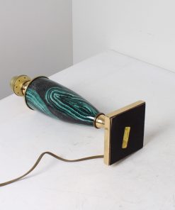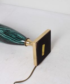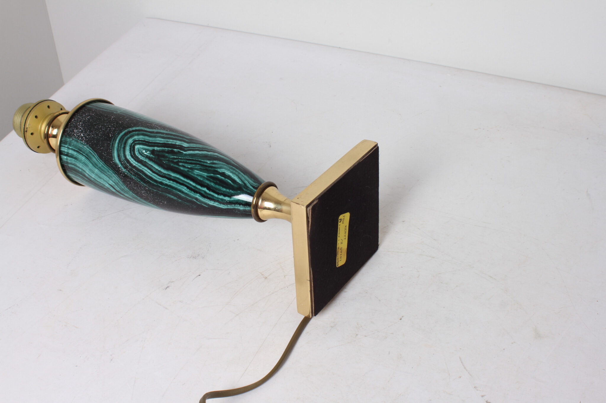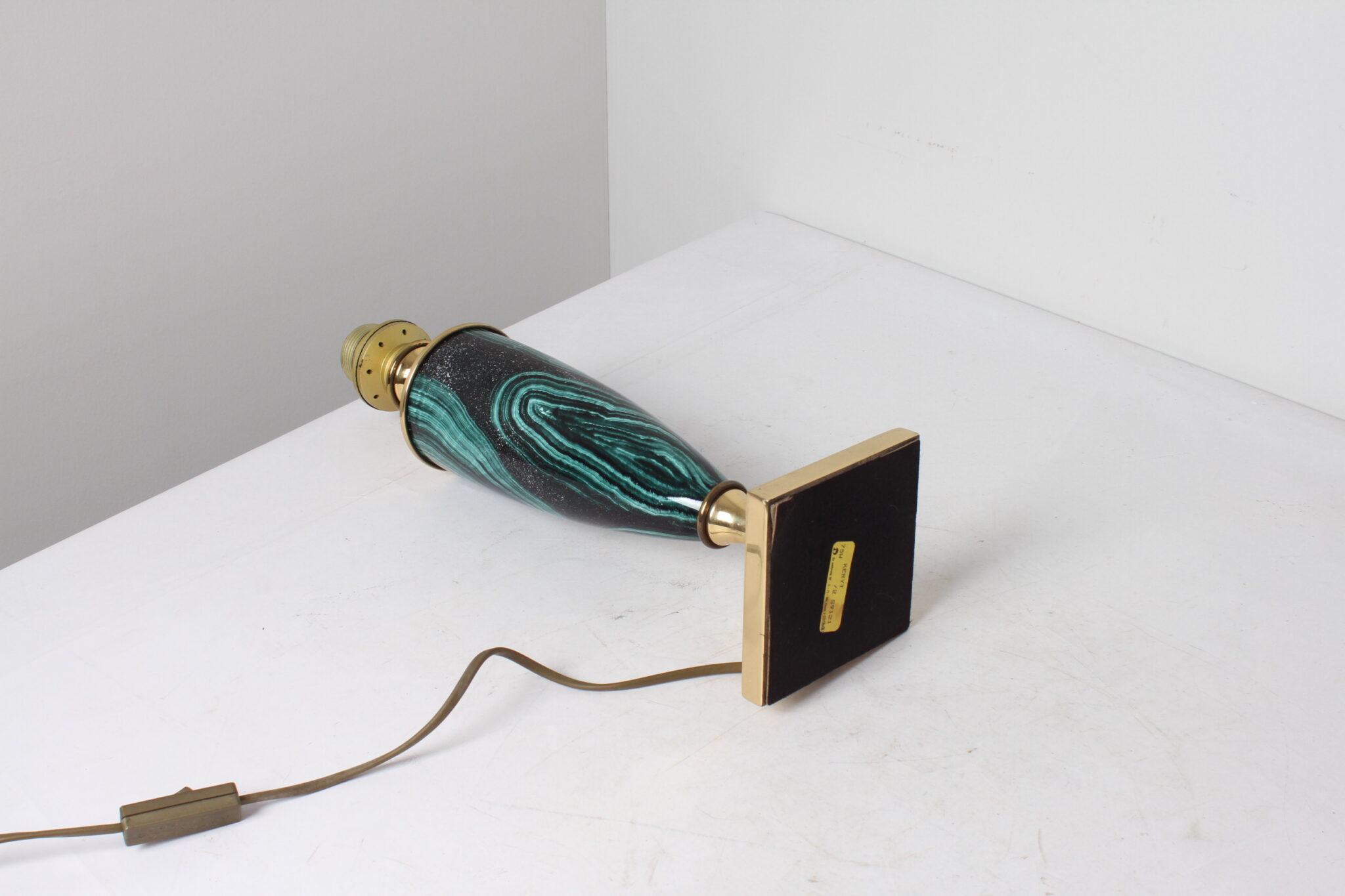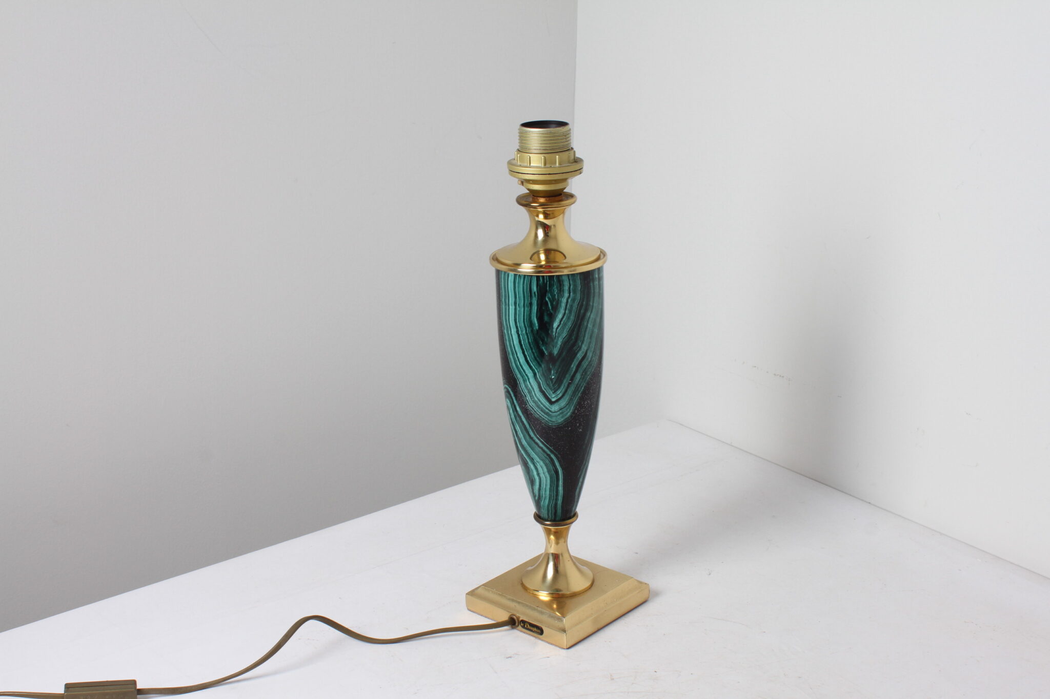 Pied en céramique tons verts sur base carrée en laiton doré.