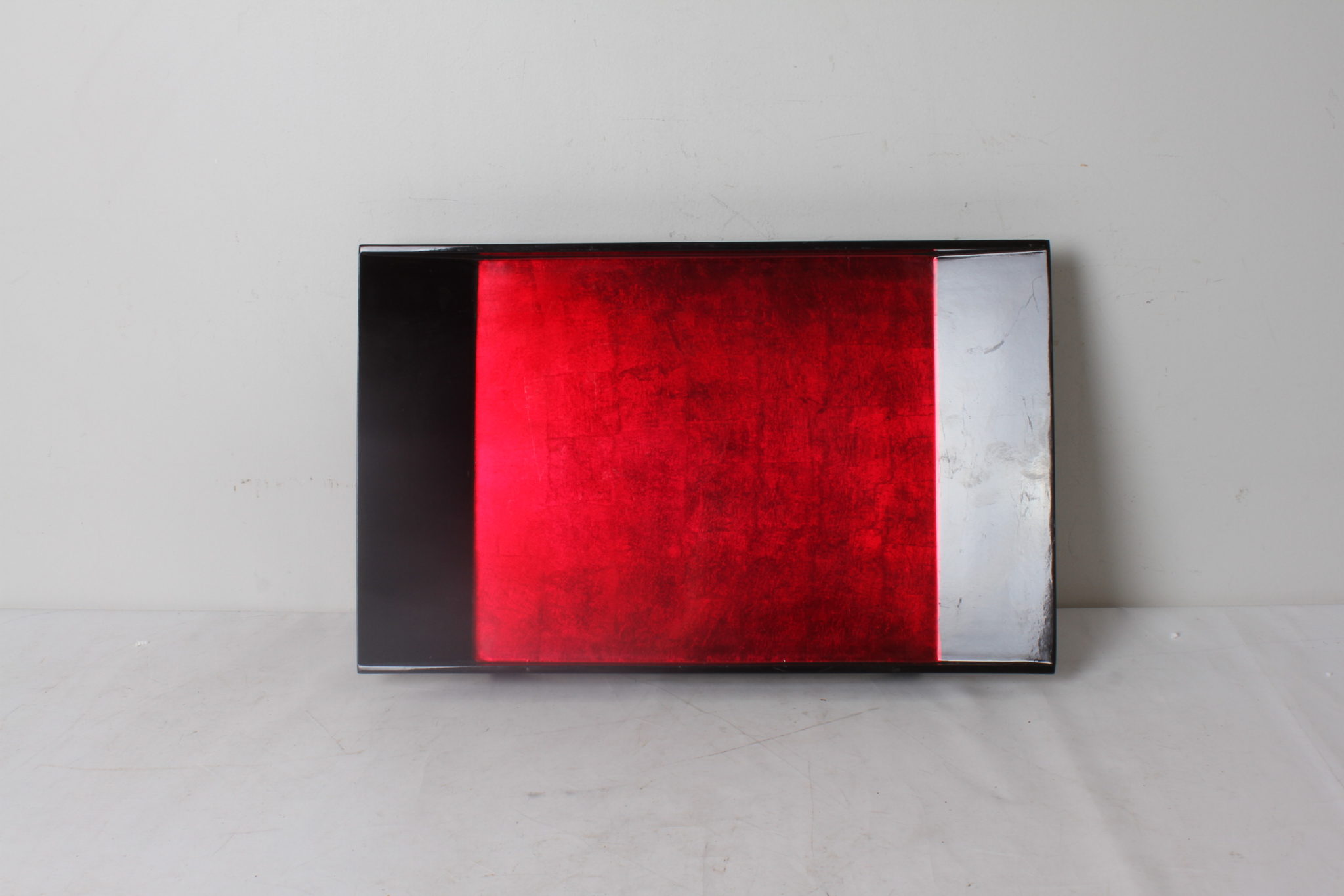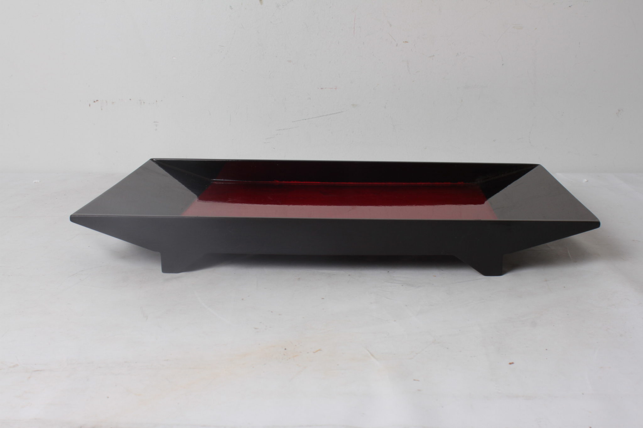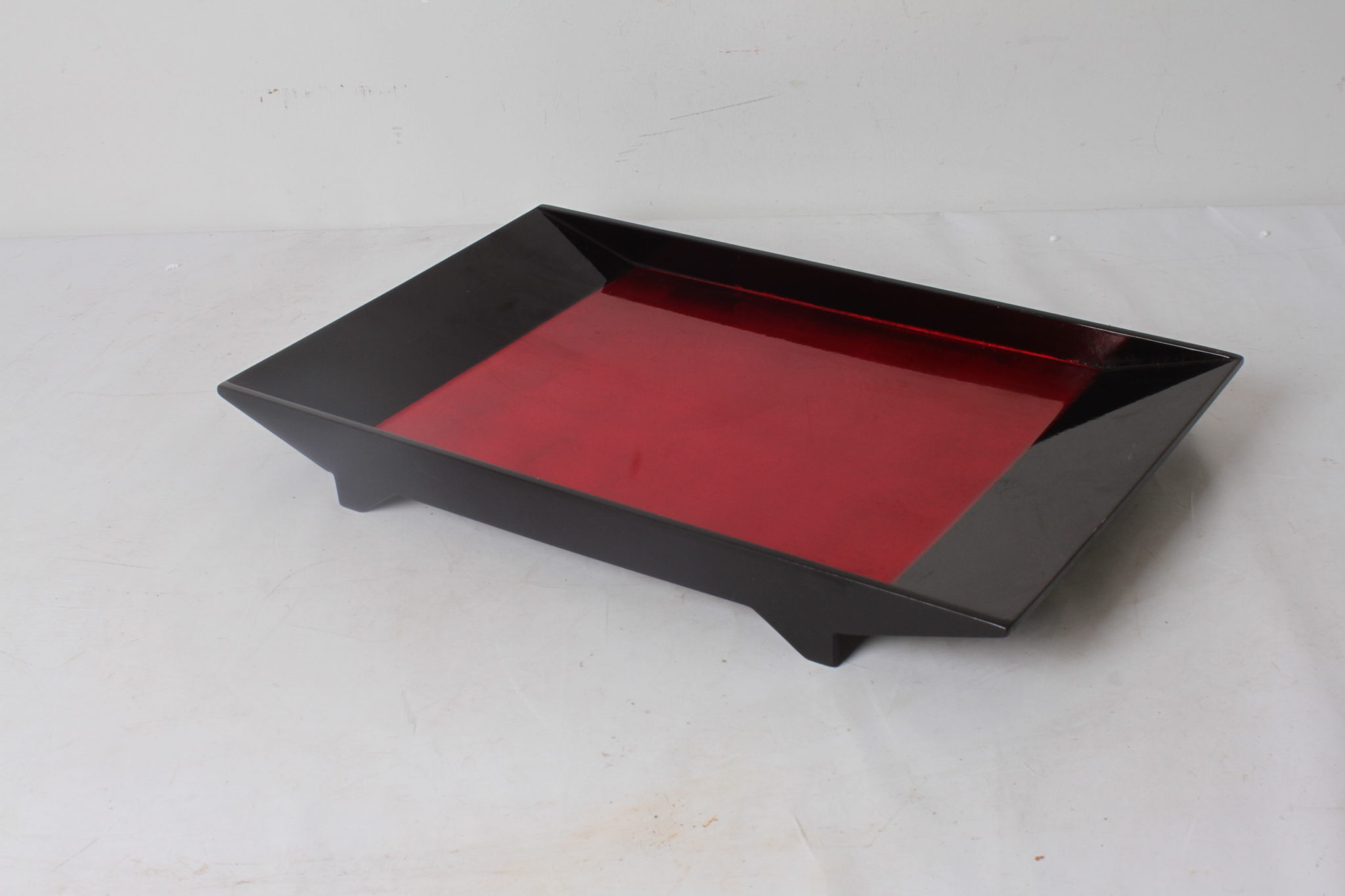Plateau de style Japonais en résine noir & rouge sur pieds.