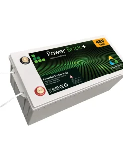 La batterie Lithium PowerBrick + 48V-72Ah a une tension nominale de 51.2V. Elle peut être aisément assemblée en série (jusqu’à 4 batterie en série) et en parallèle (jusqu’à 15 batteries).