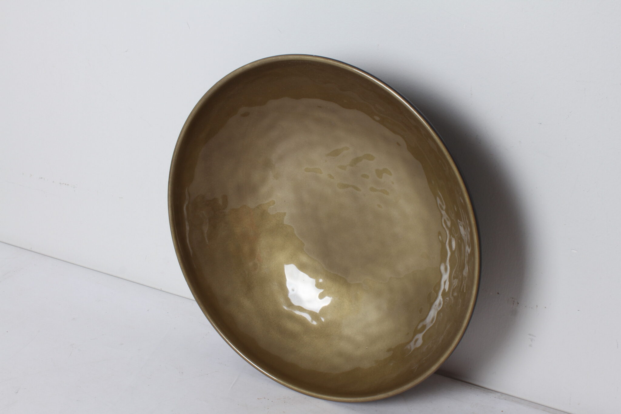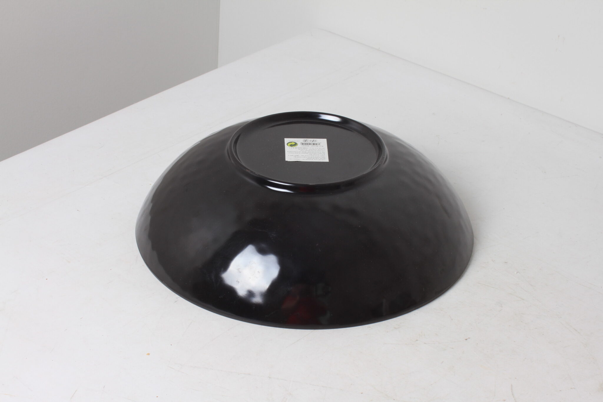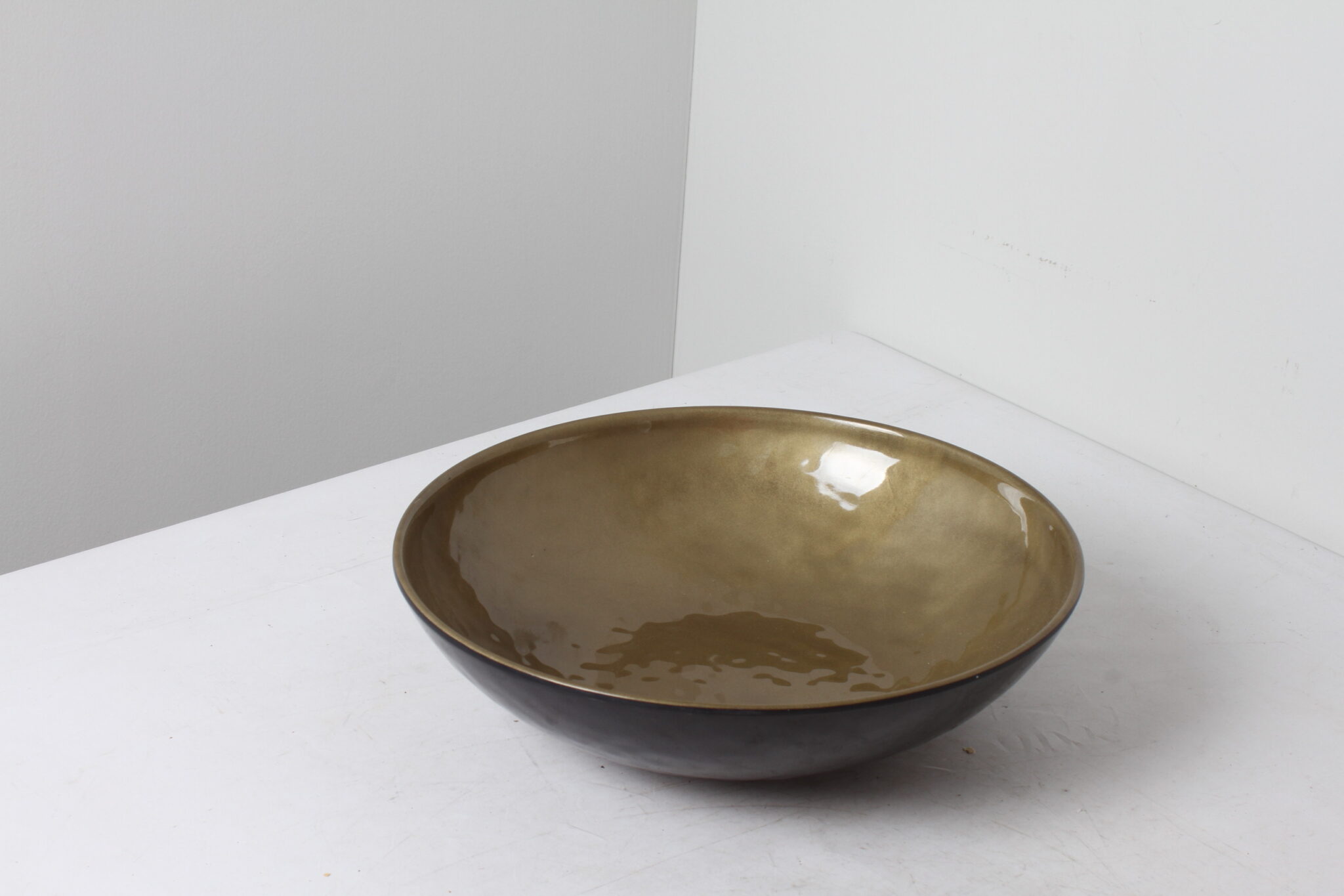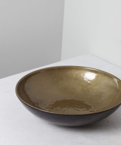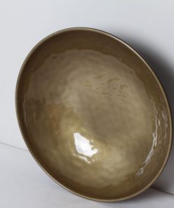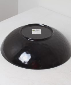 Grand saladier en plastique immitation céramique de couleur dorée et noire.