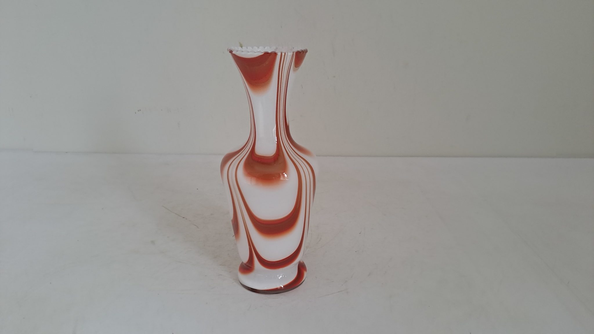 Vase vintage Pop Art en opaline marbrée brun/orange.